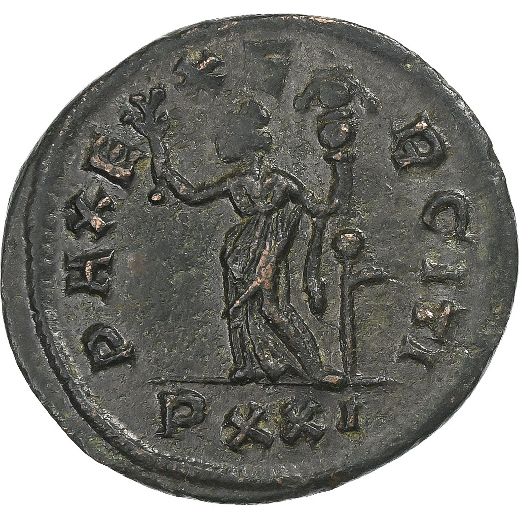 Pax w udrapowaniu, stojący w lewo, trzymający w prawej ręce gałązkę oliwną i chorągiew w lewej RIC V Carus 75IMP CARVS P F AVGPAX EXERCITI // PXXI3.78 gr