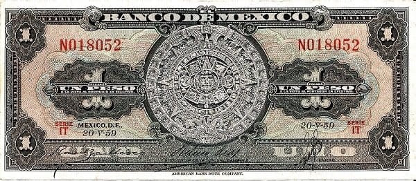 Meksyk 1 Peso Kalendarz Azteków 1959 P-59f