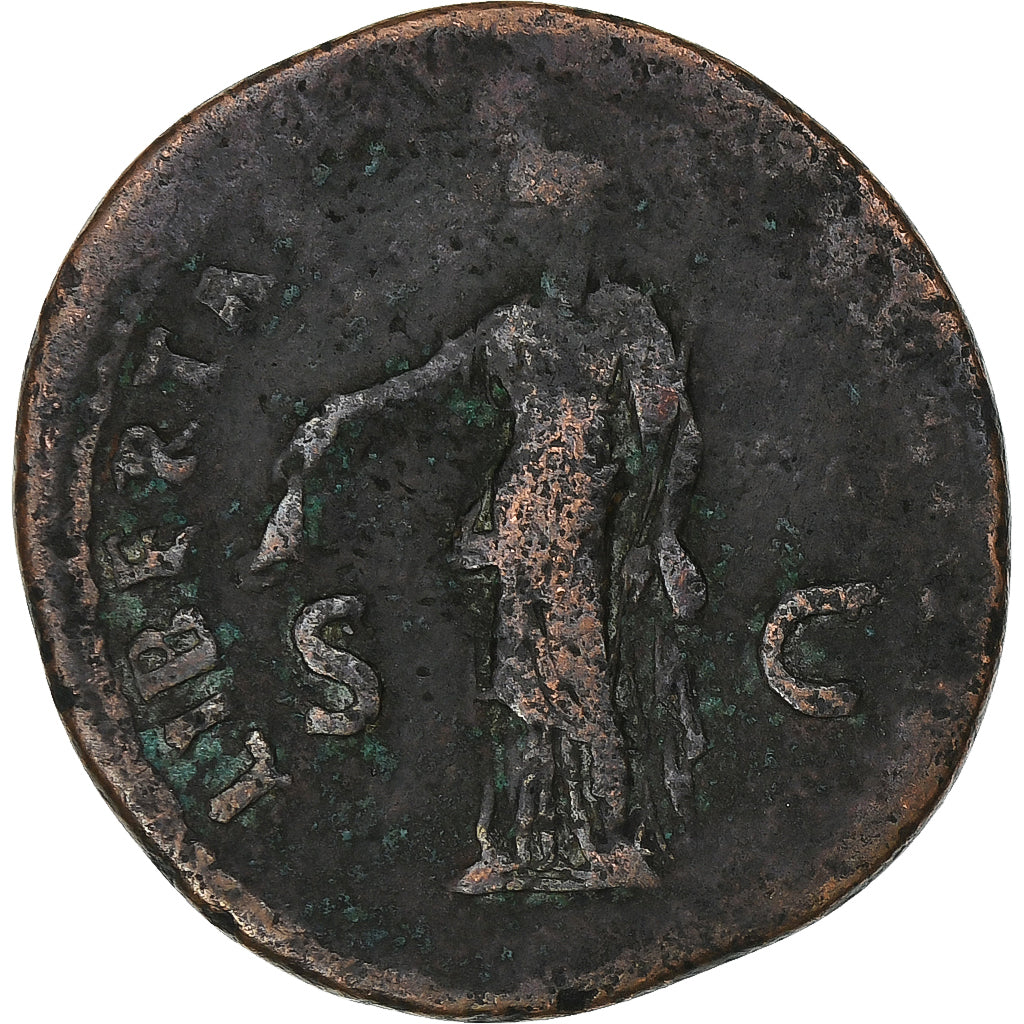 Libertas, udrapowany, stojący w lewo, w prawej ręce trzymający kapelusz i krótkie berło, skierowane nieco w górę w prawo, w lewej ręce [IMP N]ERVA CAES AVG P M TR P COS II [P P]LIBERTAS [PVBLICA] S C9.51 gr