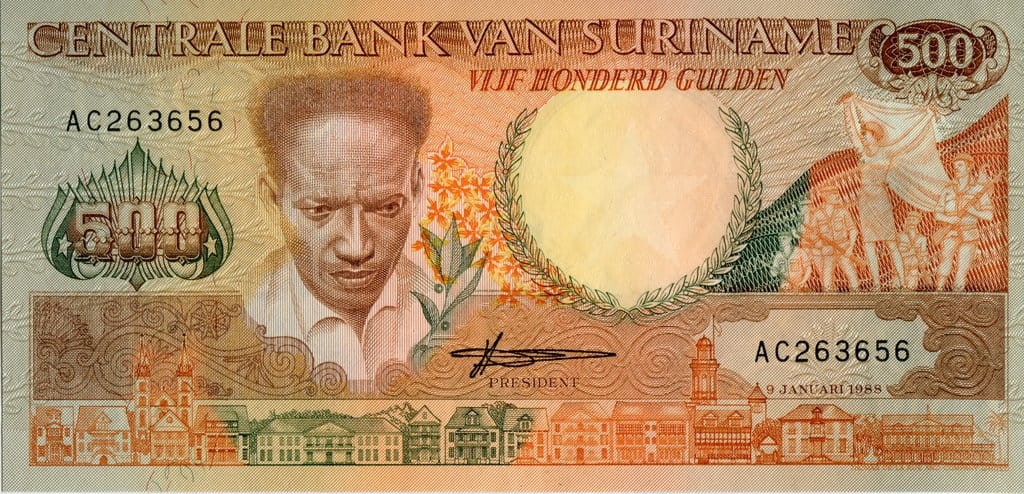 Surinam 500 guldenów Tukan 1988 P-135b